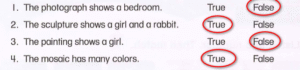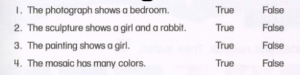3. 🔊 The paiting shows a girl. → False (The painting shows a bedroom.)
