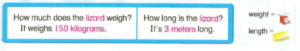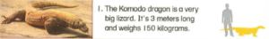 1. 🔊 The Komodo dragon is a very big lizard. It’s 3 meters long and weighs 150 kilograms.