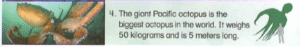 4.🔊 The giant Pacific octopus is the biggest octopus in the world. It weighs 50 kilograms and is 5 meters long.