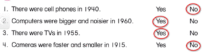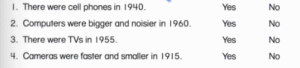 4. 🔊 Cameras were faster and smaller in 1915. → No (Vì: Máy ảnh năm 1915 to và chậm hơn, không nhanh và nhỏ.)