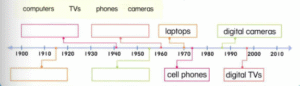 Technology is very important today. There are cell phones, laptops, digital tvs, and digital cameras. These are things we use often, but in 1940, there weren’t any of these things. There weren’t any computers. The first computer was this. Its name is Colossus, and it’s from 1943. It’s over 70 years old. Colossus was very big and very very noisy. It was a big calculator. There were lots and lots of buttons on Colossus. They were red, green, yellow, black and gray. There were many lights too. They were red and white. There wasn’t a keyboard. There was a big typewriter. It was on a table with lots of paper. There was a screen but it was very different. There weren’t any words. There were green lines.