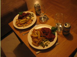 - (Bữa tối bọn mình ăn bít-tết được không?)